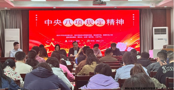 为深入贯彻落实习近平总书记关于作风建设的重要指示精神,扎实推进全面从严治党。2025年4月9日,南阳师范学院生命科学学院召开学习贯彻中央八项规定精神专题会议,会议由学院党委书记廖闯主持,全体教职工参加。