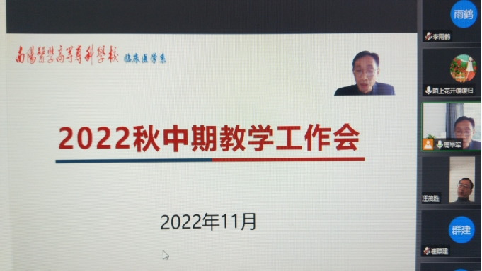 11月9日下午,临床医学系召开了“以党的二十大精神为指引 党建与教育教学融合驱动”线上教学工作会。系主任崔群建、党总支副书记黄川锋、副主任周毕军等领导以及全体专任教师参会,会议由系副主任周毕军主持。
