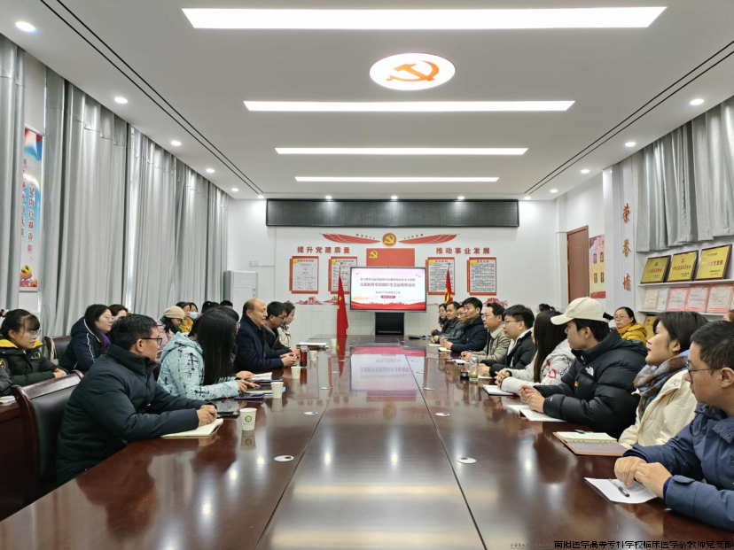 2023年1月18日下午,临床医学系教师党支部在4号教学楼党员活动室开展学习贯彻习近平新时代中国特色社会主义思想主题教育专题组织生活会观摩活动。邀请校党委委员、副校长张胜海和我校党支部书记代表观摩指导,临床医学系党政领导班子和教师党支部全体党员参加。会议由教师党支部书记黄川锋主持。