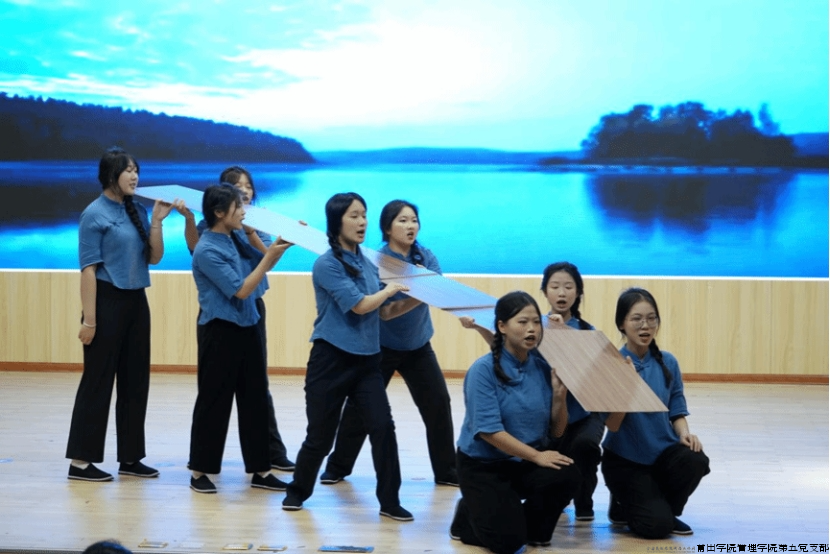 图为莆田学院“布谷鸟”青年志愿宣讲团开展“赓续红色沂蒙精神 凝聚青年奋进力量”宣讲活动——红色艺术党课:原创情景剧《沂蒙火线桥》。