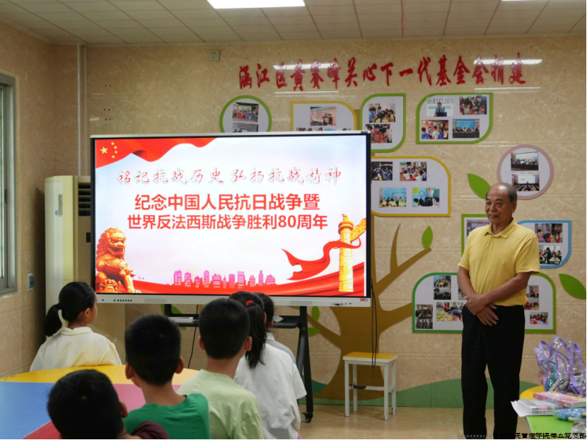 活动在“铭记抗战历史 弘扬抗战精神——纪念中国人民抗日战争暨世界反法西斯战争胜利80周年”主题宣讲中拉开帷幕。海星村老党员志愿者余文秀化身“宣讲员”,通过生动的历史故事、珍贵的抗战影像资料,带领小朋友们回顾抗战烽火岁月,感悟英雄无畏精神。小朋友们聚精会神聆听,在互动问答中踊跃发言,纷纷表示要“记住历史,努力学习,做新时代的小英雄”。
