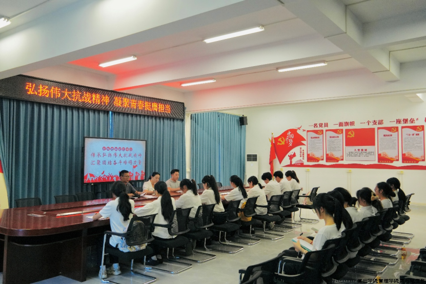 为深入学习领会习近平总书记在纪念中国人民抗日战争暨世界反法西斯战争胜利80周年大会上的重要讲话精神,弘扬伟大抗战精神,激发青年学子的爱国热情与责任担当,9月12日,管理学院第二党支部、第五党支部、紫霄渭庄社区3#-4#楼栋功能型党支部联合在红色驿站开展“弘扬伟大抗战精神 凝聚青春挺膺担当”主题党日活动。管理学院党委副书记、第五党支部书记曾丽青,管理学院团委副书记、霄渭庄社区3#-4#楼栋功能型党支部书记张少涵,管理学院第二党支部书记张泽友,各党支部学生党员、入党积极分子及青年学生代表参加活动。