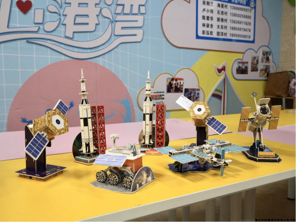 航天国防主题创意手工作坊环节将活动推向高潮,小朋友们积极参与,欢声笑语不断。在志愿者的指导下,小朋友充分发挥自己的想象力和创造力,制作出一件件精美的航天模型。