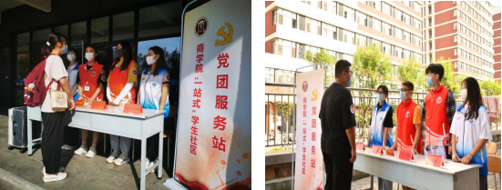 党建领团建,党团服务站成为迎新桥头堡。在学院一站式学生社区迎新现场,党团服务站“人气爆棚”。在专业答疑组、生活指引组、志愿服务组、社团介绍组等各个服务小组中,组长均由正式党员担任,带领小组成员热情为新生服务。而新生也在党团服务站中收获了对大学党团组织的“初体验”。“党团服务站的学长学姐真的好优秀啊,非常感谢学长学姐对我的帮助,我也想像他们一样成为一名光荣的学生党员。”