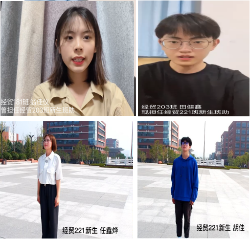 这样的温暖并不是“独一份”。两年前,还是新生的经贸203班田健鑫在他的班助翁佳仪指导下,一路拍摄着入校视频走进理工大学,开始记录他的大学生活。如今,已是新生班助的田健鑫在得知自己担任班助的经贸221班任鑫烨和胡佳也有同样的想法时,拿出了他当年入校时的视频剧本,和新生一起策划着入校视频拍摄。田健鑫说:“拍摄入校视频,是想认真度过自己的大学生活,是对大学的期待和憧憬,当年作为我们班助的营销181班翁佳仪学姐也帮助过我,我也要帮助我带的新生。”