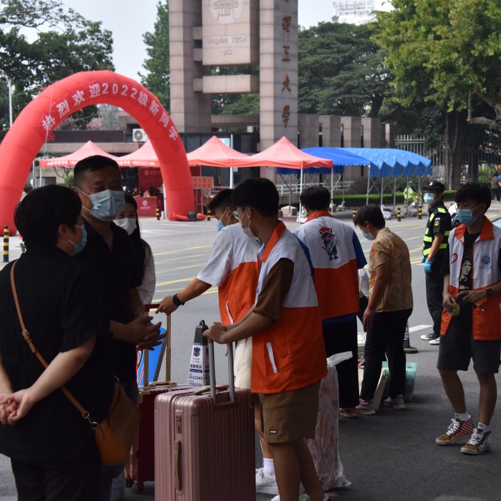 坚持以学生成长为中心,以学生需求为出发点和落脚点,将党建、思政、管理、服务等各方力量第一时间汇聚社区,在开学迎新、疫情防控等大型活动中充分发挥学生社区中的党员作用,在学校的多个地点设置“党员先锋岗”。特别是在9月份的迎新活动中,学院积极整合学生社区资源,将迎新工作与志愿服务相结合,做好2022级学生接待、志愿者招募组织、选拔与培训,积极搭建师生共同参与志愿服务的工作平台,组织协调了百余名青年志愿者参加迎新工作,他们轮班上阵,一对一地接引新生入学,从机场、车站接驳到校门引导、身份核验、行李搬运,再到住宿、入学手续办理的引导,环环相扣的每个环节,每名新生的身旁都会有志愿者忙碌的身影,为新同学提供方便快捷又周到暖心的服务,助力迎新服务实现“全链条、全覆盖”。