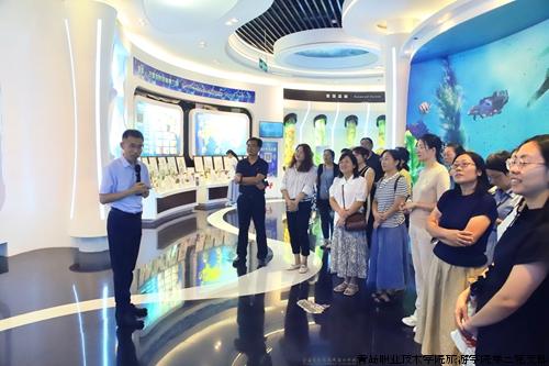 在李可昌的陪同下,教师们参观了中国海藻科技馆、海藻部落、海藻健康舫,了解了明月海藻集团充分挖掘海洋资源、优化海洋资源配置、加快能源转型、构建高水平海洋产业发展格局,不断提升海洋新质生产力,把一棵小海藻做成一个大健康产业的创新发展之路。目前,明月海藻集团已经拥有海藻功能原料产业、海洋健康产品产业、海洋生物医药产业、海洋生态肥料产业、海洋文化旅游产业五大产业板块,是全球规模最大的海藻生物制品生产企业,青岛明月·海藻世界也是全球唯一一个以海藻为主题的国家AAAA级旅游景区。