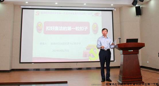 陈书记以“扣好廉洁的第一粒扣子”为题,围绕《中国共产党纪律处分条例》主要精神和内容,通过丰富详实的案例,解读党的政治纪律、组织纪律、廉洁纪律、群众纪律、工作纪律和生活纪律,教育引导2024届毕业生党员做到“五要”,即,一是要有敬畏心,时刻敬畏纪法,保持“公心”, 守住初心,在思想境界上增强廉洁意识、群众意识、责任意识,心有所畏,言有所戒,行有所止;二是要有高境界,时刻坚守廉洁底线,做到“一生廉洁”,在道德修养上做到慎初、慎独、慎友、慎言、慎好;三是要起到表率作用,从实践中砥砺廉洁之行,能干事、干实事;四是要敢于斗争,善于斗争,远离“高压线”,划清“分界线”;五是要建好家风,在实际行动上把好亲情关、生活关、交友关,把好人生“总开关”。