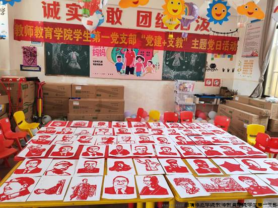 巧手剪纸心向党,指尖传情颂党恩。支部党员组织钢厂小学45名留守儿童展开红色人物肖像剪纸创作,组织光头小学21名困境儿童开展长征、红船精神等历史故事剪纸,用剪和印刻结合的方式,以建党初期与新中国成立初期、社会主义建设、改革开放、社会主义现代化建设这四个时期的时代先锋人物为内容,以103位时代先锋的肖像为原型进行剪纸创作,向小学生宣传党的精神谱系的丰富内涵,带领小学生领略传统艺术之精巧的同时,于一刀一刻的匠心之间感受、传承党的精神,以剪纸形式展现时代风采,传播正能量、讴歌新时代,推动非遗文化与乡村教育的深度融合。