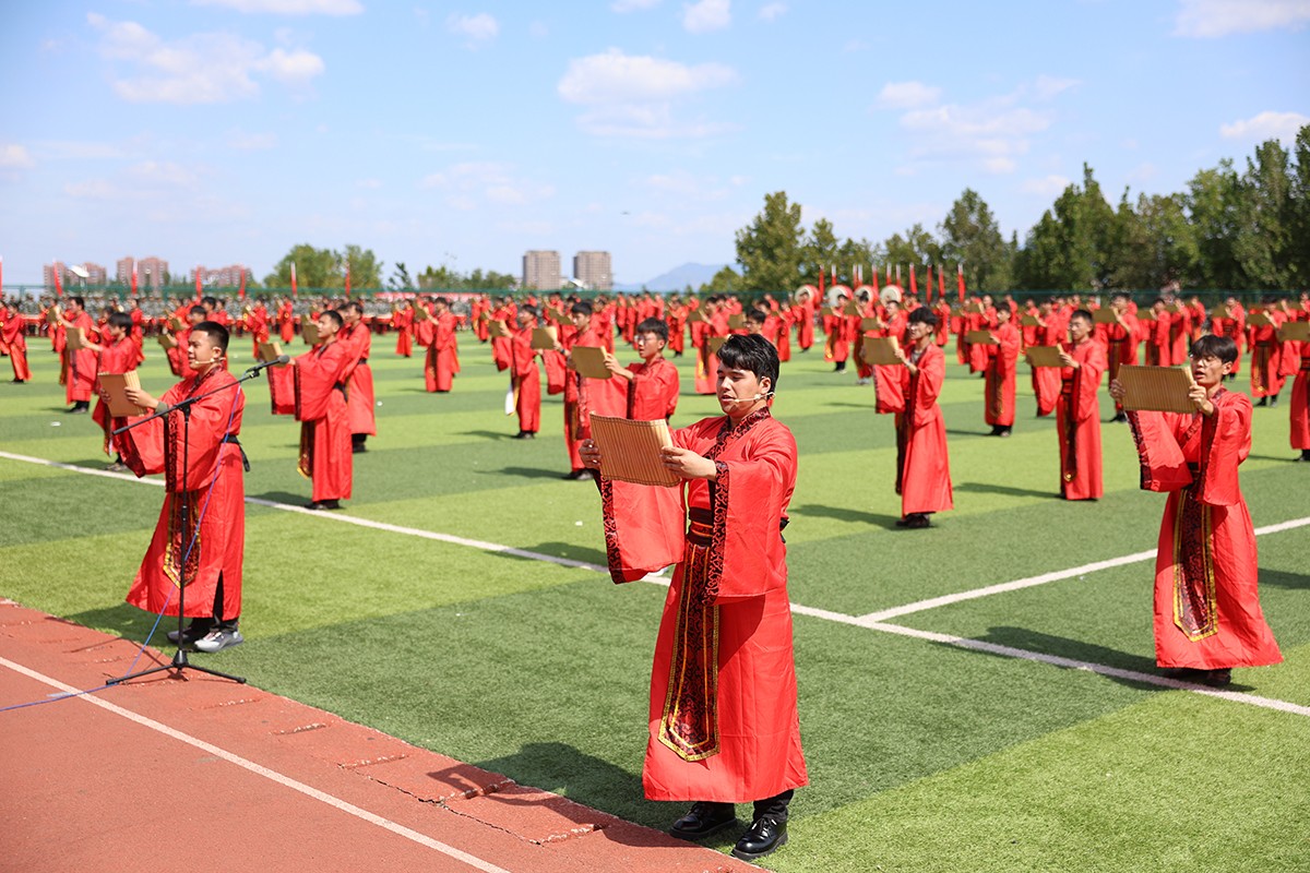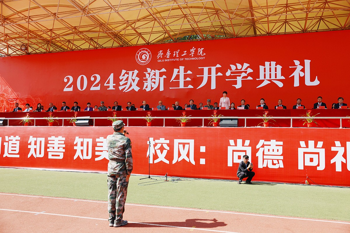典礼上,2024级新生进行了精彩的汇报表演。《论语》诵读、军事技能表演、国标舞、校园舞等逐一上演,精彩纷呈,展现了齐鲁理工学子昂扬向上的精神风貌和青春活力,彰显出拼搏奋斗的精神和报效祖国的理想信念。
