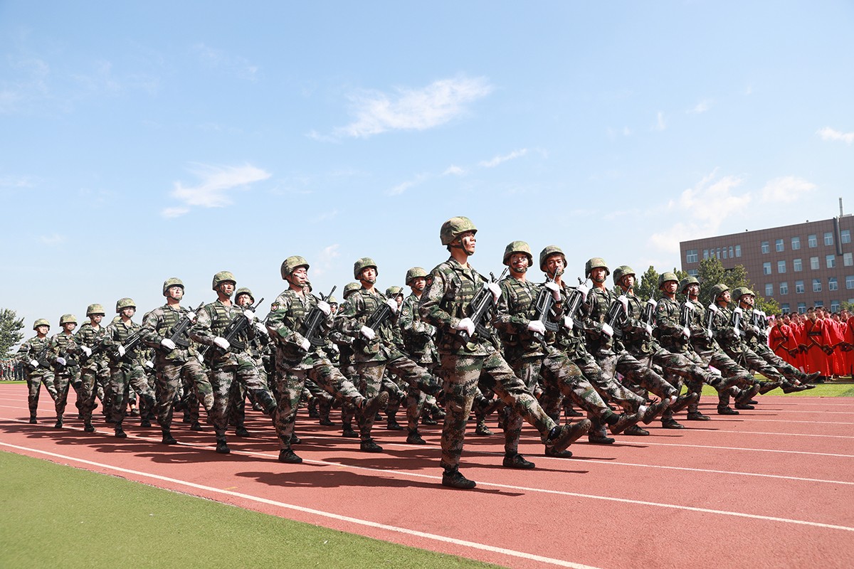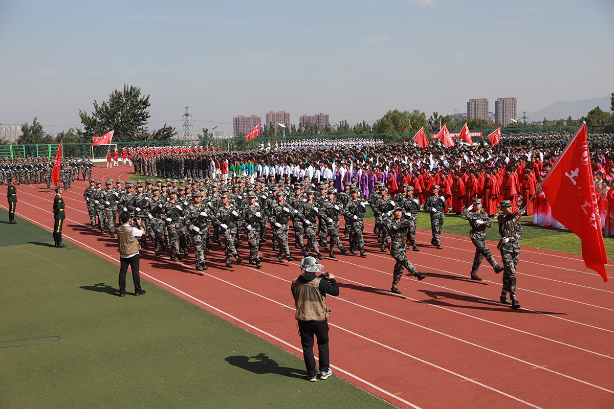 典礼前,首先进行了2024级新生军政训练阅兵仪式。受阅方队迈着整齐坚定的步伐,喊着嘹亮的口号,昂首阔步依次走过主席台接受检阅。他们精神饱满、斗志昂扬、英姿飒爽,展现了2024级新生军训成果和蓬勃的朝气。
