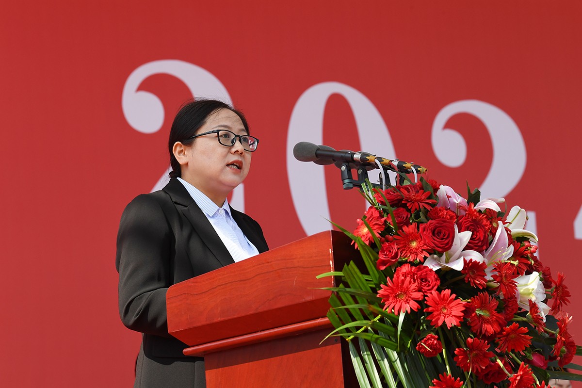 在热烈的掌声中,校长常翠鸣教授发表了热情洋溢的讲话。她代表全校师生员工向来自全国各地的2024级新生表示热烈欢迎,介绍了近年来学校改革发展取得的成绩,讲授了开学第一课。她希望同学们树立远大志向,挺膺担当民族复兴大任;珍惜大学时光,全面提升知识能力素质;根植齐鲁文化,涵养高尚道德优良品行。她勉励同学们发扬齐鲁理工人不懈追求、不甘人后、不畏险阻的精神品格,践行面对国旗发出的豪迈誓言,不负时代、不负韶华,以最饱满的精神、最奋进的姿态、最坚实的脚步、最丰硕的成果,度过最幸福美好的大学时光,开创最灿烂辉煌的未来!