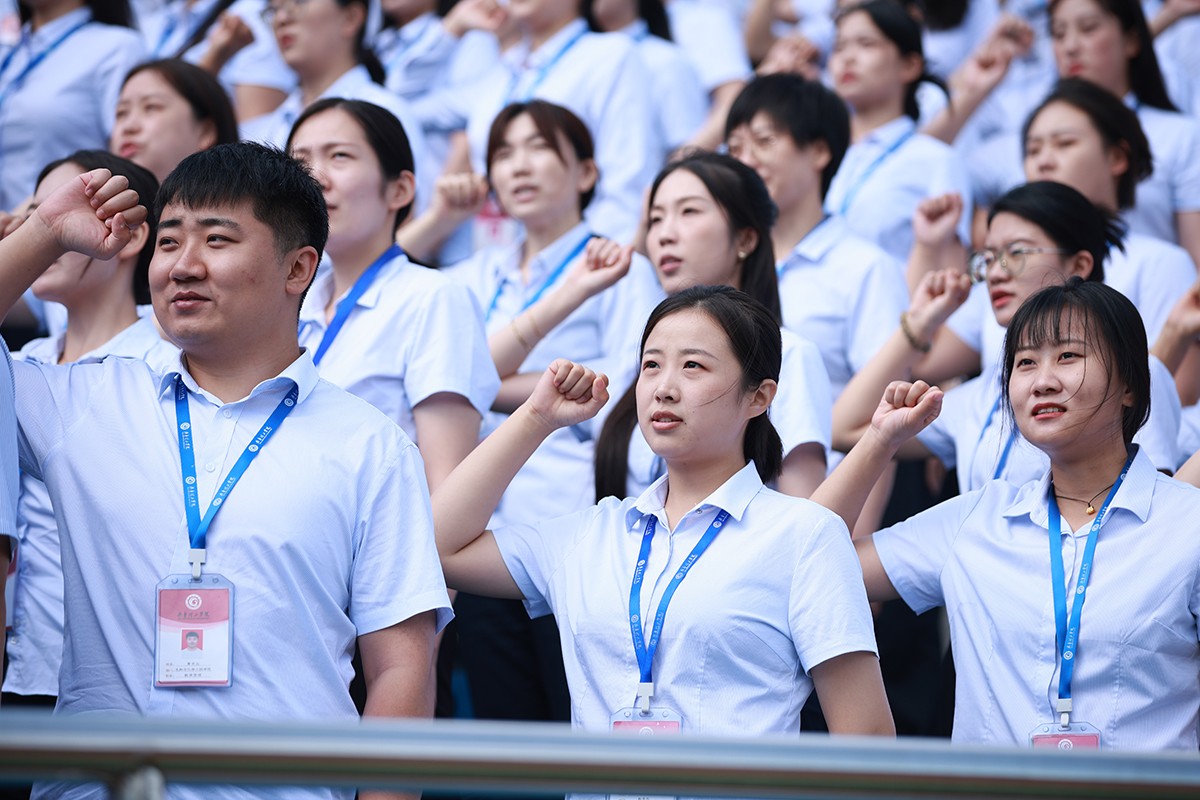 在鲜艳的五星红旗下,举行了教师、学生宣誓仪式。全体教师庄严宣誓,立志忠诚党的教育事业,弘扬教育家精神,牢记为党育人、为国育才的初心使命,为强国建设、民族复兴努力奋斗。2024级新生在宣誓中,表达了“请党放心,强国有我”的决心和信心。