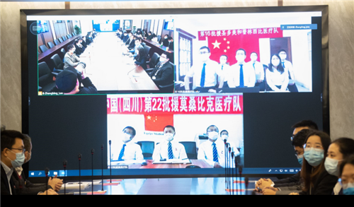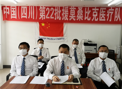 北京时间12月18日下午,我院举办“我和我的祖国”中非三地主题党日活动。我院人力资源部党支部、信息中心党支部,中国第22批援莫桑比克医疗队临时党支部、中国第16批援圣多美和普林西比医疗队临时党支部全体党员,机关党总支、组织部等职能部门参加活动。四川大学党委第八轮巡察第四巡察组成员苏勇林同志列席会议。