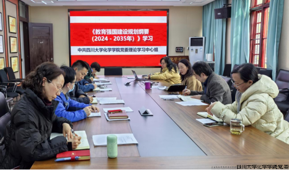 2025年2月25日,化学学院党委理论学习中心组召开学习会,学习《教育强国建设规划纲要(2024-2035年)》,全体理论学习中心组成员参加会议。谢均主持会议并讲话。