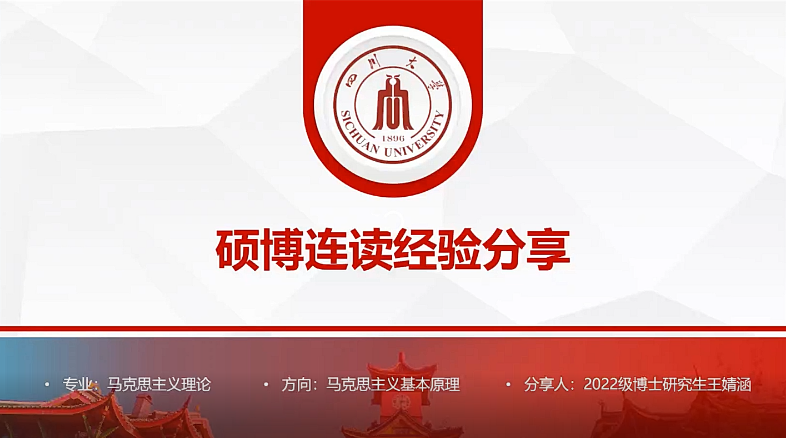 王婧涵分享了自己硕博连读的经验。她表示,明确读博意愿后,需要大量阅读相关方向的著作,积极与意向导师沟通交流,按照流程准备硕博连读申请。