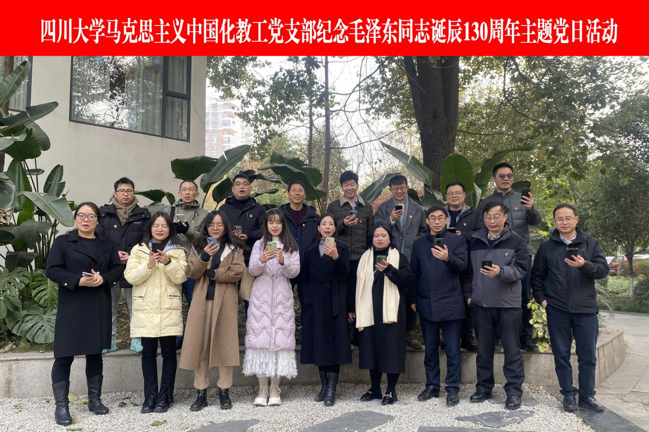 2023年12月26日上午,在毛泽东同志诞辰130周年之际,为深切缅怀毛泽东同志为党和人民建立的不朽功勋,追忆学习毛泽东同志的崇高风范和革命精神,发扬红色传统,赓续共产党人精神血脉,马克思主义中国化教工党支部前往成都市新都区桂湖公园开展“诵读伟人诗词,感悟红色情怀——纪念毛泽东同志诞辰130周年 ”主题党日活动。本次主题党日活动由学院党委委员、支部书记李红同志主持,支部全体党员参加。