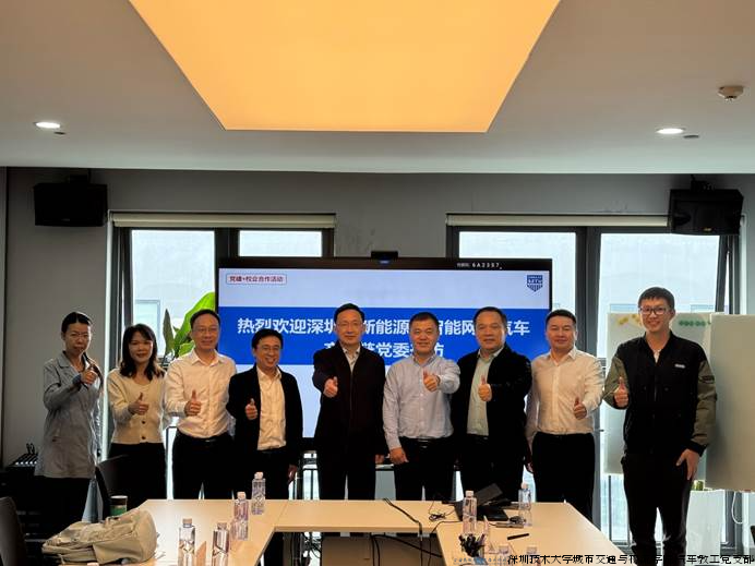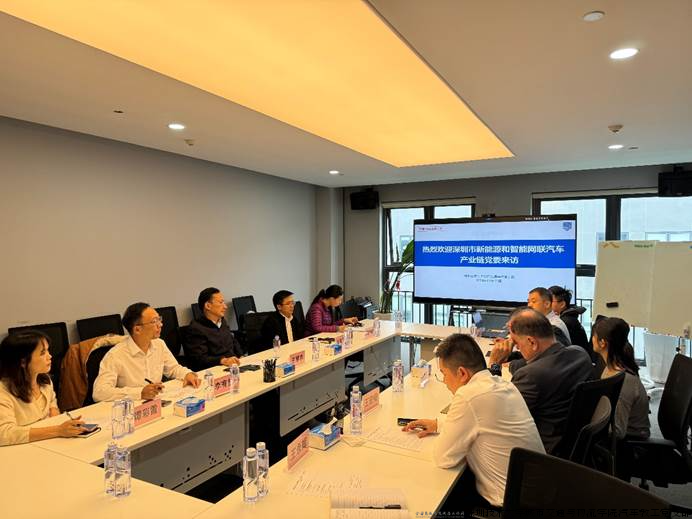 11 月 21 日,深圳市新能源和智能网联汽车产业链党委一行来到深圳技术大学城市交通与物流学院进行交流,来访人员包括深圳市新能源和智能网联汽车产业链党委第一书记、原深圳市政府政策研究室 (市政府发展研究中心) 党组成员、二级巡视员王慧农,党建组织员黄振彤、谭彩霞、冯斯斯,市汽车产业联合会执行秘书长李有贵,坪山区发展和改革局副局长卓凤军。学校科研与校企合作部党支部书记焦兴利、城市交通与物流学院党总支书记罗钦、院长Franz Raps、汽车教工党支部李和言、王宏楠、王永辉、宋懂宏等接待来访一行。