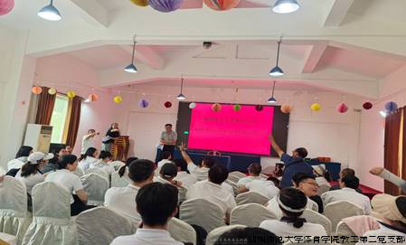活动伊始,体育学院党委书记何群同志致辞。她指出,此次活动是学院贯彻落实新时代党的建设总要求的生动实践,通过将党建工作与教研活动有机结合,既丰富了组织生活内容,又提升了党员教师的专业素养,体现了教育工作者“立德树人”的使命担当。之后,活动落实了第一主课制度,何书记带领党员学习了习近平总书记关于加强党的作风建设的重要论述和重要指示批示精神。