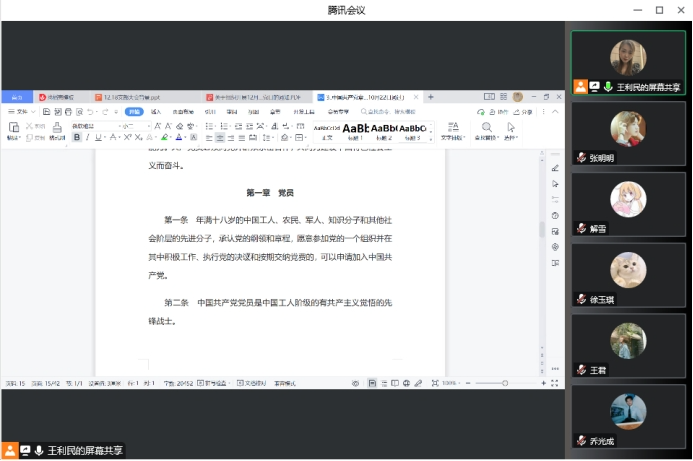 会上,宣传委员张群带领支部全体党员学习了《中国共产党章程》第一章党员部分,着重学习了党员的权利和义务、党员入党时间的确定、党员党龄的计算方法、退党与自行脱党的情形等内容。