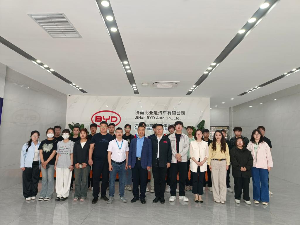 赵秋叶一行 参观了比亚迪汽车整装车间。比亚迪集团华北区人力资源主管张富顺对公司流水线车间、生产发展情况似及智能化运营模式管理进行了介绍。学生们对现代化生产设备、精密的工艺流程以及高效的生产管理留下了深刻的印象。