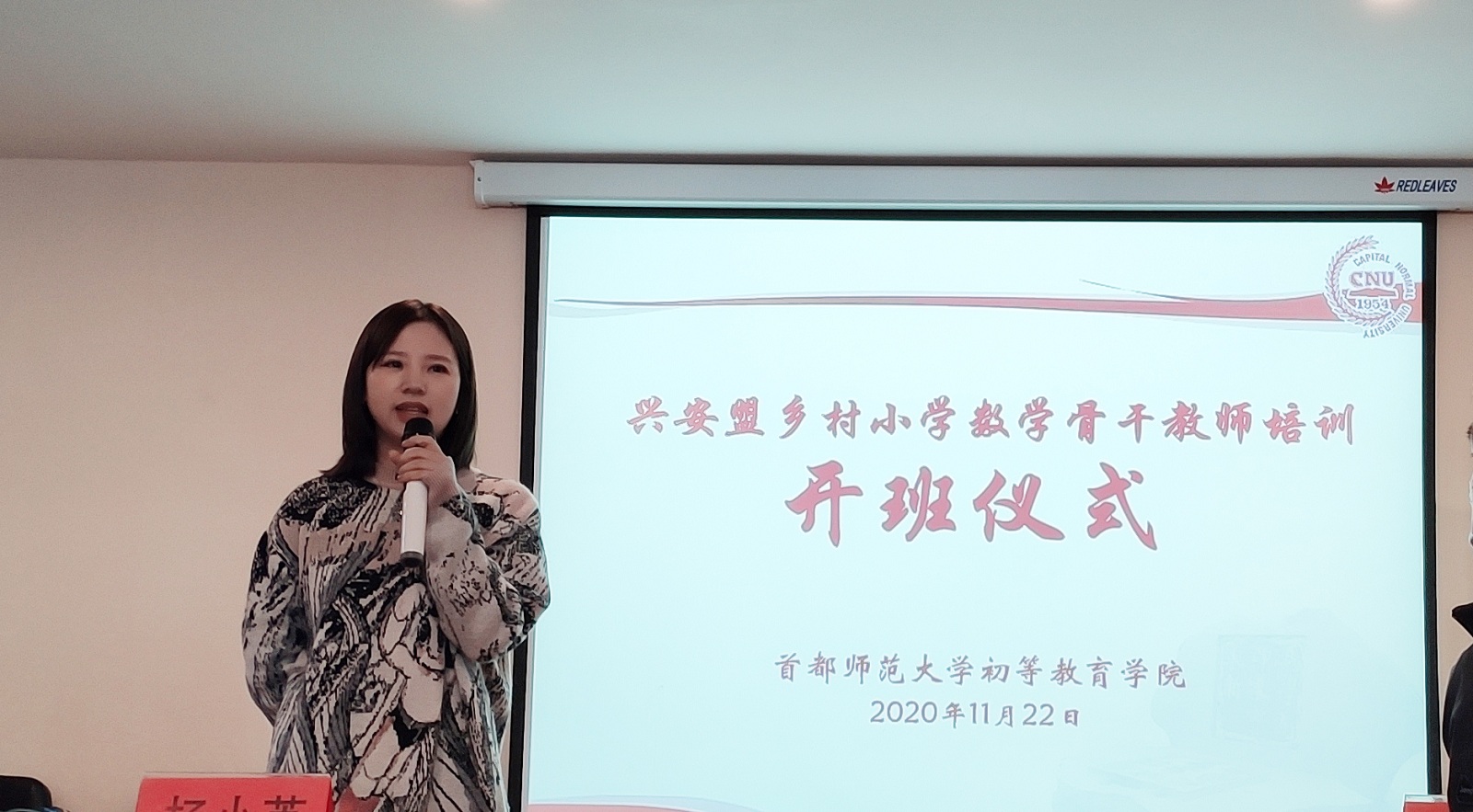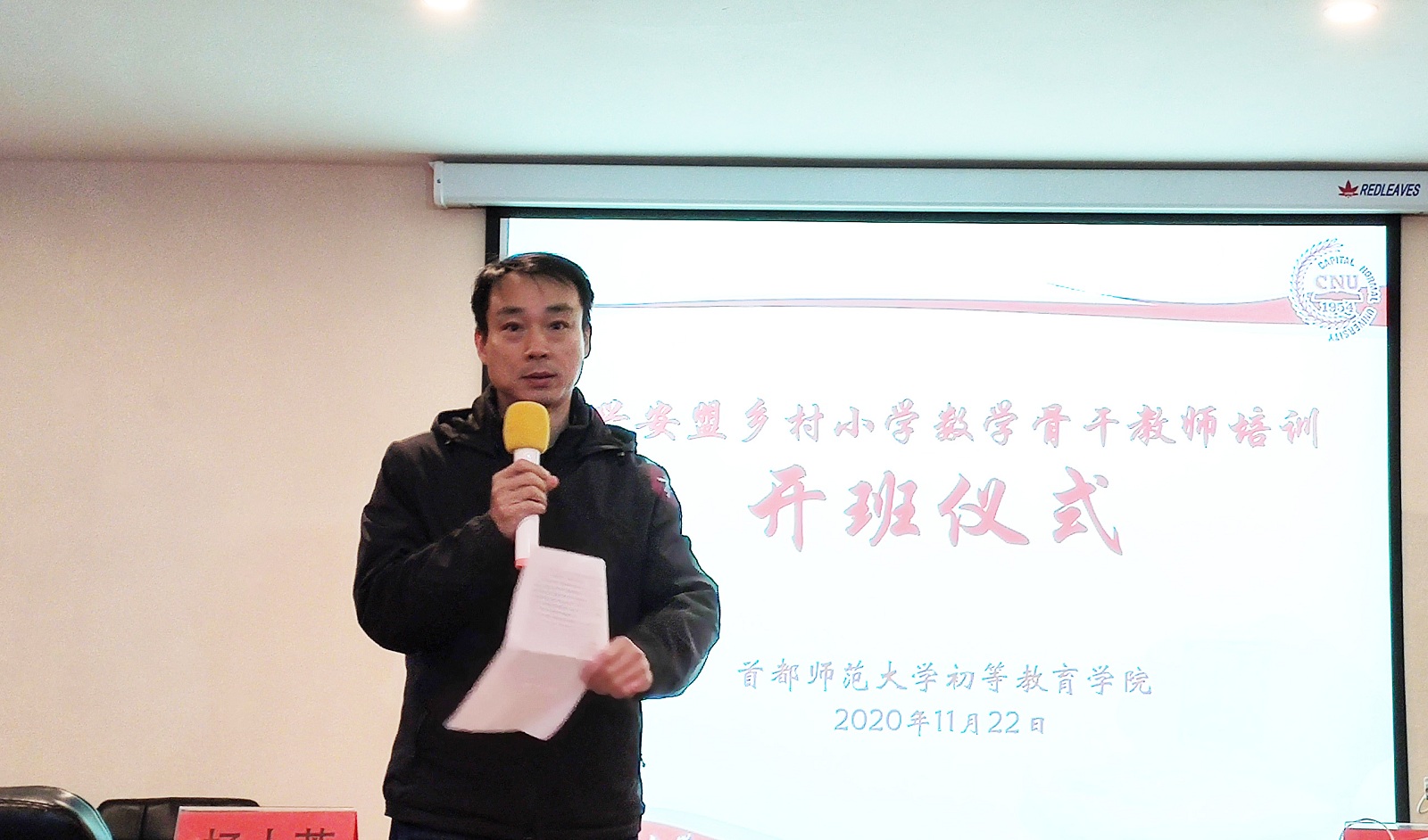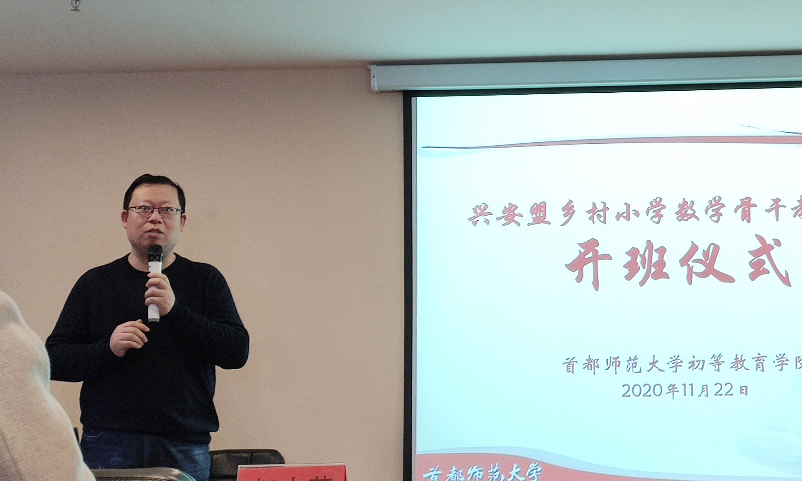 2020年11月22日,兴安盟乡村小学数学骨干教师培训班开班仪式在北京维也纳酒店(万达西八角站)举行。本次培训是落实京蒙教育精准扶贫政策与措施的重要项目,着力于提升内蒙古自治区兴安盟乡村小学数学骨干教师的教学能力,拓展教师视野。共有50位来自兴安盟来自各旗县市的教研员和乡村小学数学骨干教师参加本次培训。开班仪式由培训办公室主任杨小英主持。