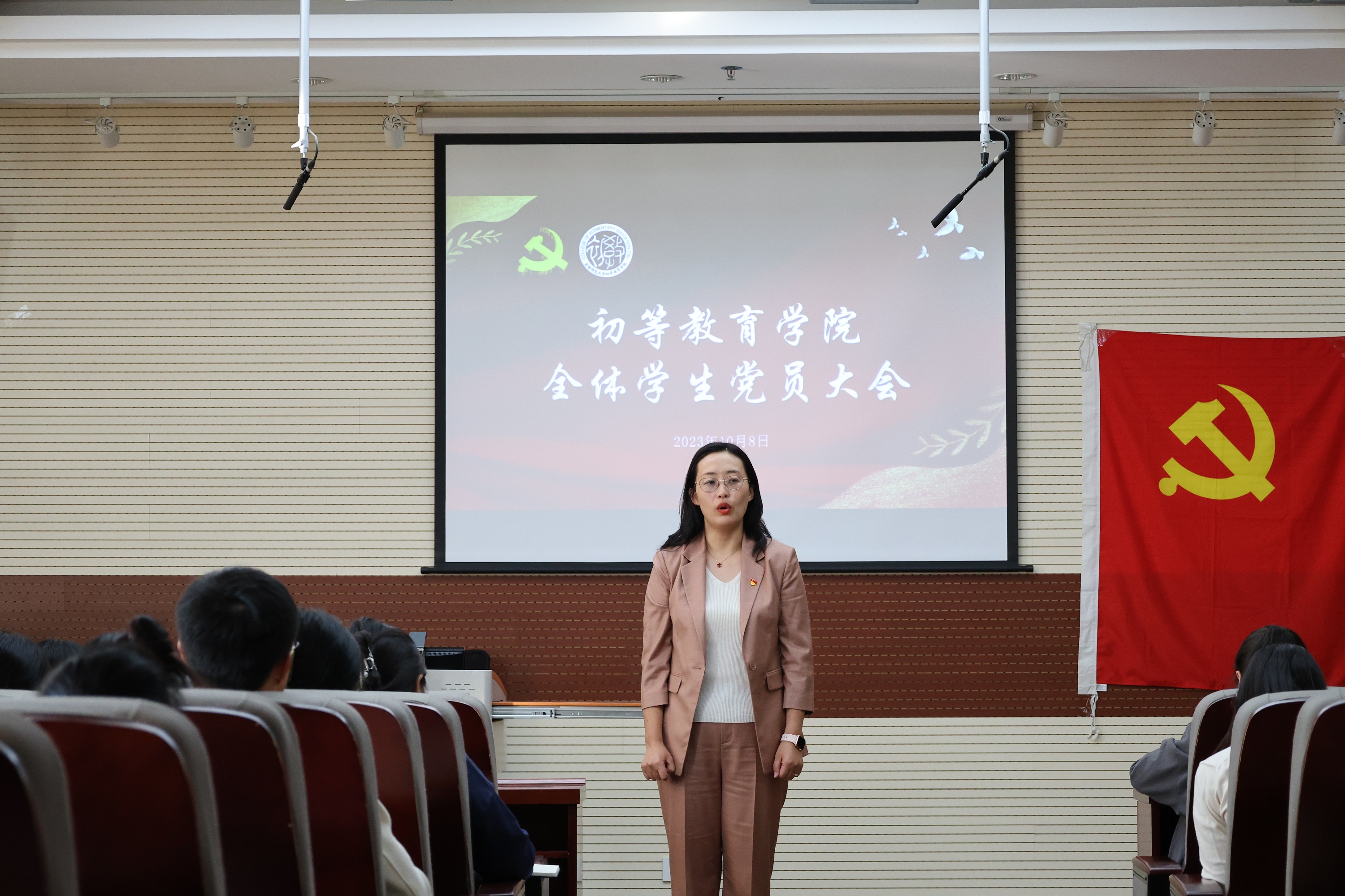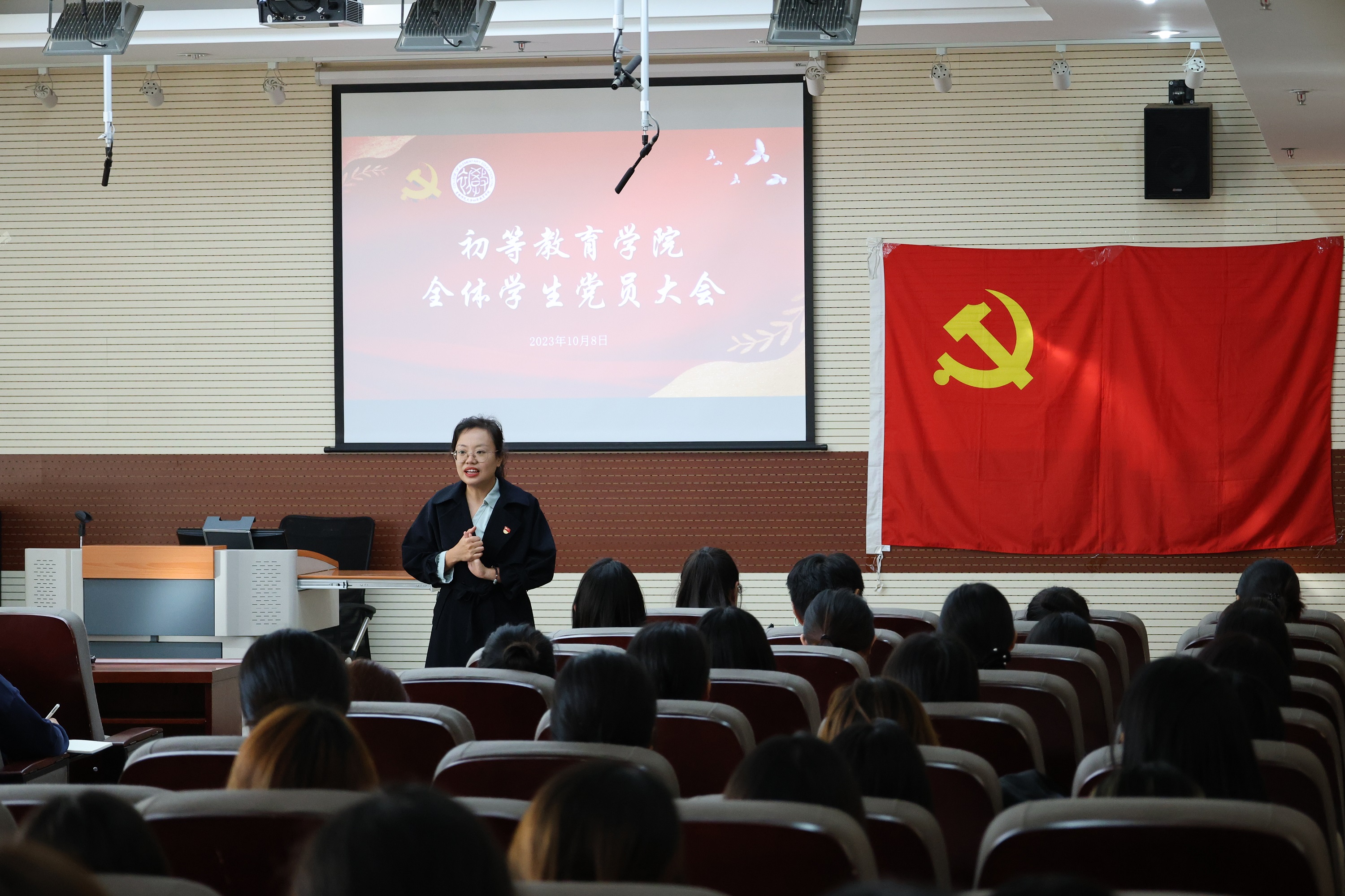 为进一步加强党员党性修养,提升党员政治意识,10月8日下午三点,初等教育学院于东校区A719教室举办了本科生全体党员大会。学院党委副书记刘婧媛,本科生全体党员参与大会。活动由本科生党建辅导员鲁华夏主持。