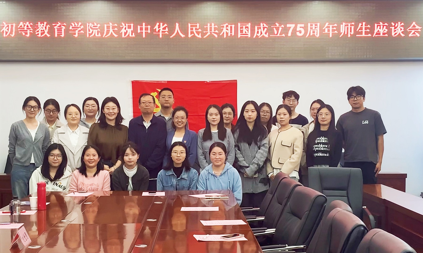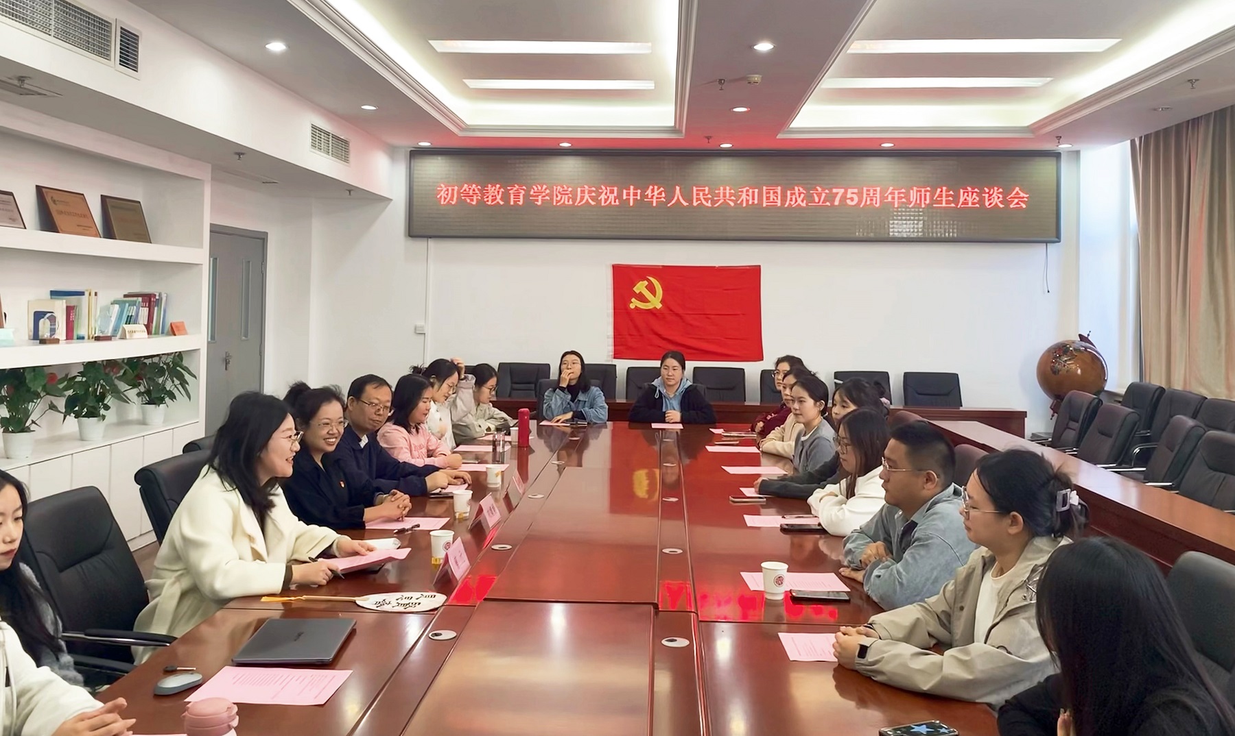 10月1日上午,在新中国成立75周年之际,初等教育学院在东一区A1007举行庆祝中华人民共和国成立75周年师生座谈会。学院党委副书记刘婧媛、教师代表赵世恩、辅导员曹元及20余名学生代表参会。会议由曹元主持。