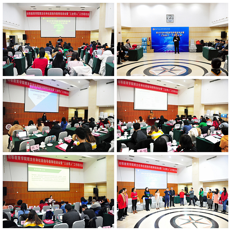 为深入落实立德树人根本任务,系统推进教育部首批“三全育人”改革试点院系工作,进一步加强班主任和社团指导教师队伍建设,2020年1月7日至8日,初等教育学院召开班主任和社团指导教师培训会暨“三全育人”工作研讨会。首都师范大学党委副书记缪劲翔、学生处处长周举坤、北京高校辅导员研修基地执行副主任陈炳哲、学院领导班子、全体专兼职辅导员、班主任、社团指导教师等50余人出席开幕式。