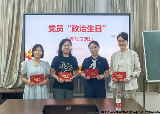 为增强基层党组织的向心力和凝聚力,丰富党内组织生活, 6月17日,医学检验系教师党支部开展了为党员过“政治生日”主题党日活动。通过重温入党誓词、赠送“政治生日贺卡”、分享入党以来的成长感悟等方式,强化党员身份意识和责任担当。通过定期组织“政治生日”主题党日活动,教育、引导全体党员时刻牢记入党初心,争先锋、做表率,永葆共产党员的先进本色。在做好本职工作,还要积极发挥先锋模范作用,全心全意为人民服务,为群众谋福利、解难题、办实事,为党和人民的事业作出更大的贡献。