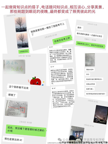 周厚敏、李伟学和王欣悦三人凭借着扎实的知识储备和不懈的努力,成功被齐鲁医药学院录取。备考期间,周厚敏总是最早到达图书馆,她将知识点整理成详细的笔记,反复背诵记忆,遇到不懂的问题,就主动向老师和同学请教。李伟学则善于总结学习方法,他把复杂的医学知识编成口诀,方便记忆,还经常和舍友们分享自己的学习技巧。王欣悦面对高强度的学习压力,始终保持着乐观的心态,她用自己的笑容感染着身边的每一个人,让大家在疲惫时重拾信心。