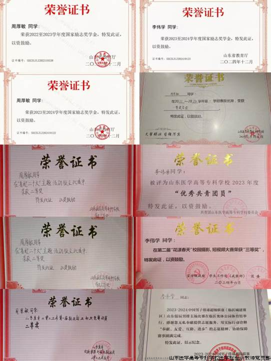 初入山东医专,五人便被“大医精诚,自强不息”的校训深深打动。“大医精诚”告诉他们,作为医学生,要有精湛的医术和高尚的医德;“自强不息”则激励着他们在求学路上永不止步。怀揣着对医学梦想的执着追求,他们在校园里开启了努力奋进的旅程。课堂上,他们认真听讲,积极与老师互动,不放过任何一个知识点;实验室里,他们专注于每一次实验操作,力求精准无误,用严谨的态度对待每一个实验数据;在课余时间,他们积极参加活动,荣获多项荣誉证书。