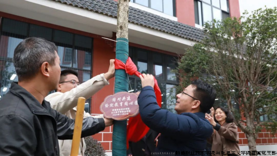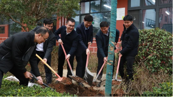 在鼓丰楼门前,两校共同植树纪念、为顺德职院和台江职校的发展共同献力,见证两校友谊长青。