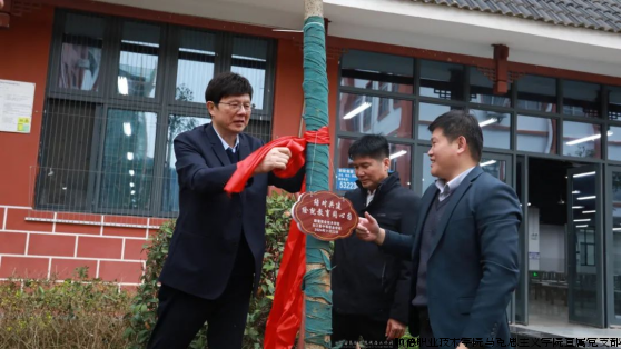 慰问结束后,两校在台江职校图书馆2楼党建书屋举行了高校“双带头人”教师党支部书记“强国行”专项行动团队工作室挂牌仪式。李先祥书记与熊金江书记共同为工作室揭牌,标志着两校在党建引领下的合作迈上了新台阶。王光副县长、梁大斌部长、杨胜文局长、黄健光副校长等见证了这一重要时刻。