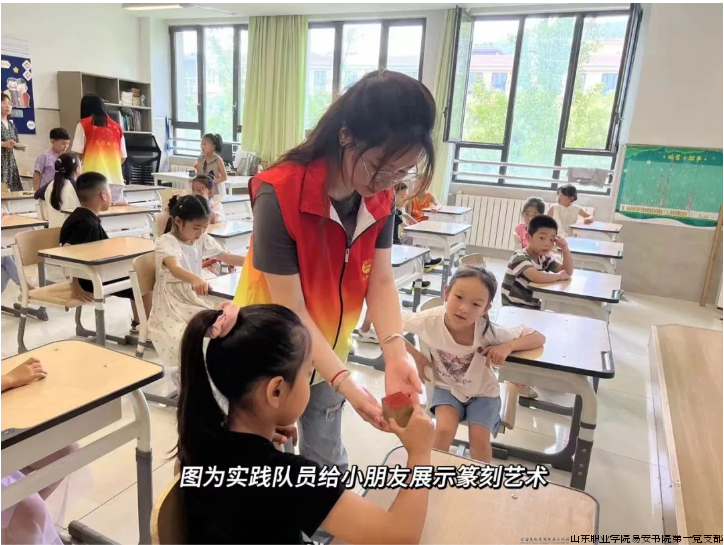 牵手儿童。实践队助力济南市高新区科创路学校携手云湖社区打造2024年暑期学习共同体,为暑期的小朋友们在进行可以辅导的同时,开展以爱国主义为主题的党史故事讲解、红歌传唱、舞蹈教学、书法篆刻、红色剪纸、团扇绘画、环境保护等特色课程。一系列活动引导小朋友们厚植爱党、爱国、爱社会主义的真挚情怀,丰富小朋友们的文化知识,提高了他们的动手能力和创造力,为他们的暑假生活添了一抹亮丽色彩。