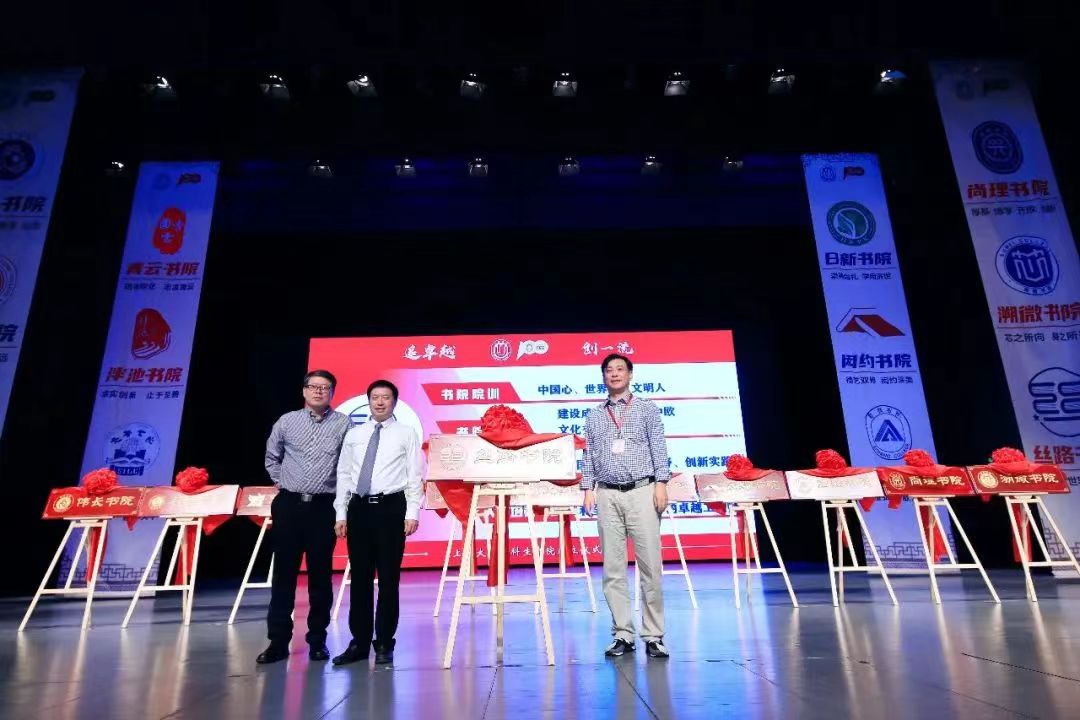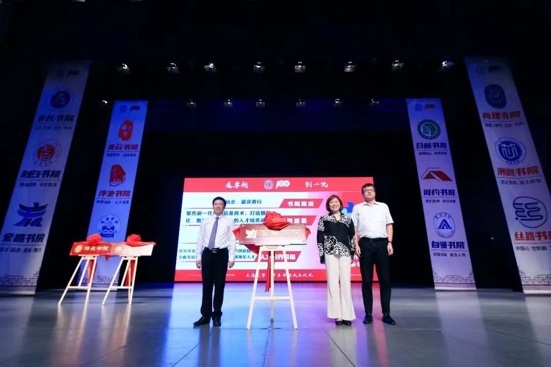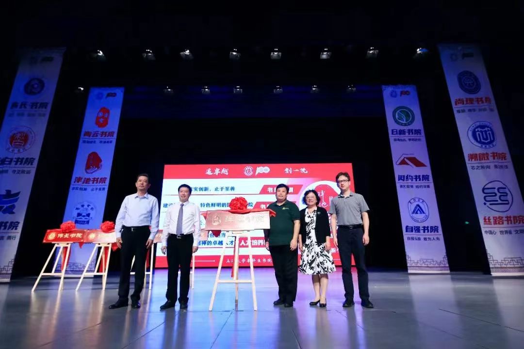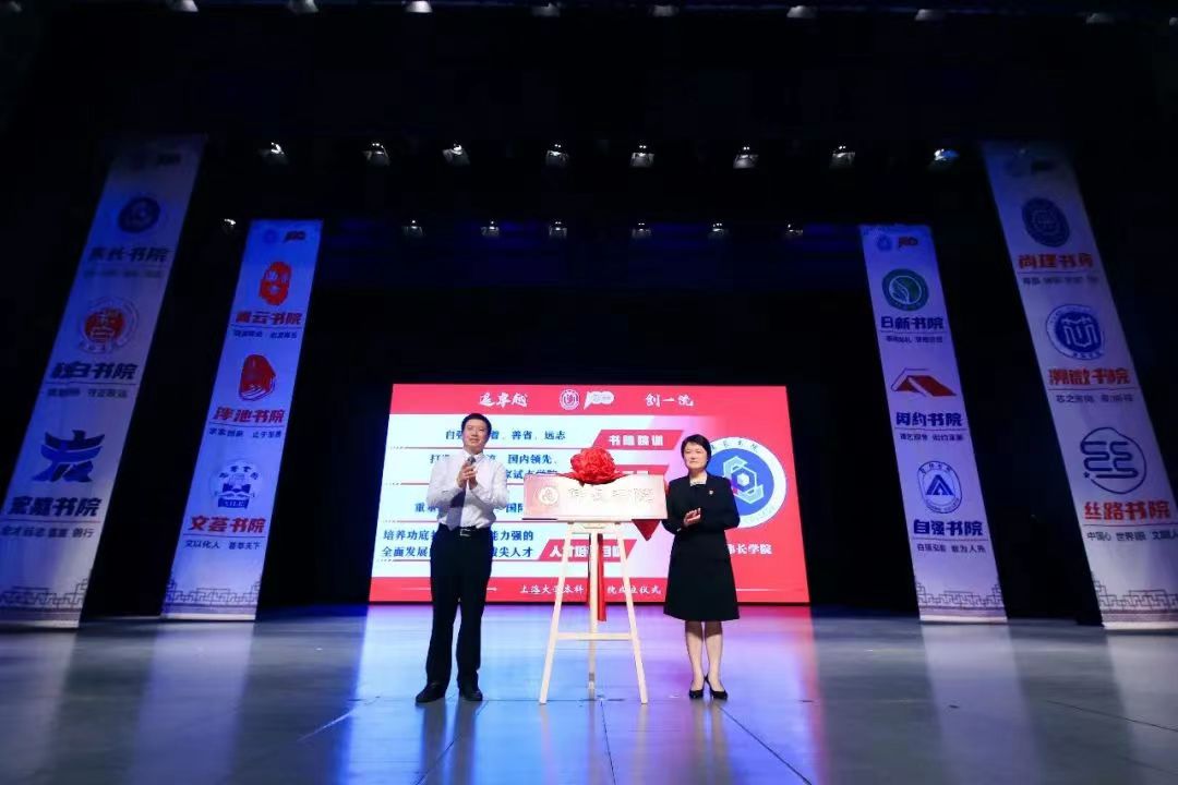 上海大学党委常委、副校长王从春为书院管理中心授牌。