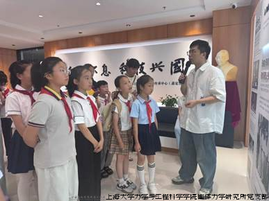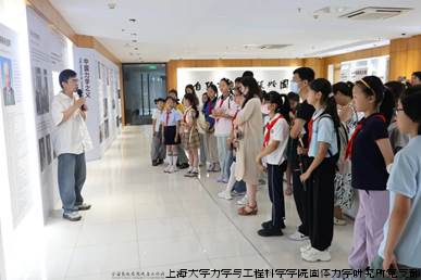 在上海大学力学与工程科学学院党委副书记、纪委书记丁珏的带领下,活动首站抵达钱伟长科学家精神传承中心。在传承中心,孩子们被钱伟长先生的爱国事迹和卓越成就深深吸引,通过珍贵的手稿、著作,他们仿佛穿越时空,与这位伟大的科学家进行了一场心灵对话,真切感受到了科学家精神的魅力与力量。