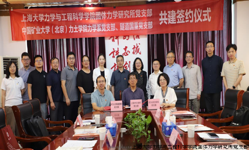 为深入贯彻落实新时代党的建设总要求,充分发挥全国党建工作样板支部的示范引领作用,加强高校基层党组织建设,促进党建经验交流互鉴,6月18日,上海大学力学与工程科学学院固体力学研究所党支部联合中国矿业大学(北京)力学与土木工程学院力学系党支部、中国矿业大学(北京)隧道国重党支部,在中国矿业大学(北京)隧道国重实验室会议室举行联合党建活动。