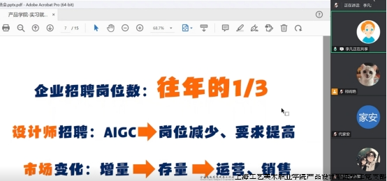 为助力 2025 届毕业生精准规划发展路径,2025 年 2 月 28 日下午,产品设计学院通过线上平台,成功举办了 “毕业设计推进与面向未来交流” 毕业动员会。此次活动吸引了 200 余名毕业生及在校生踊跃参与,借助 “政策 + 行业 + 资源” 三维赋能模式,为毕业生搭建起一座成长的立交桥。