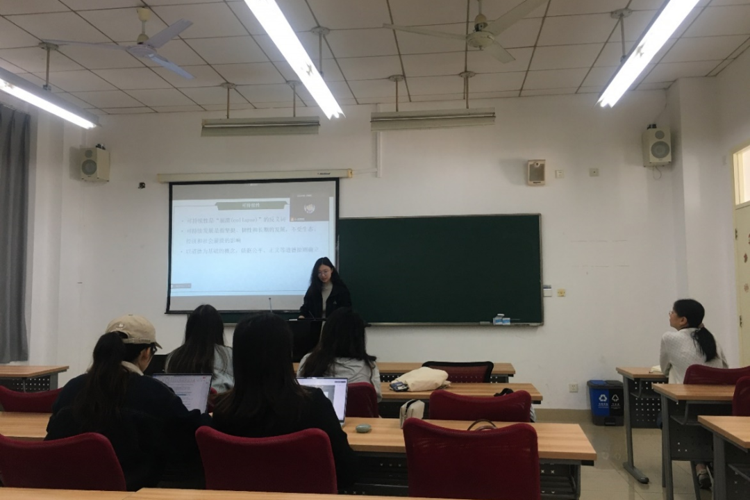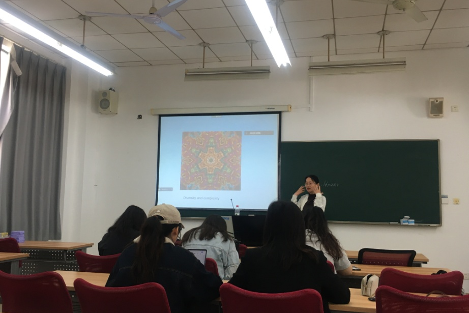 课程的主题为《后现代主义及课程理论》。课程开始的环节为学生展示,一位同学分享了瑞典高校的可持续发展课程项目,并探讨如何在文科教学中将可持续发展理念融入到课程思政中,其间同学们进行发言互动交流,然后迟老师总结讲评。