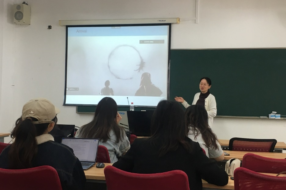 在谈到非线性叙事、身份认同等问题时,迟老师结合科幻小说《降临》来展开这个话题,有些同学虽没有读过这部小说,但是看过改编电影,所以借用这一故事很容易将讨论深入下去。同学们纷纷打开思路,在审视课程与教学设计问题时,会综合考虑社会变迁、学生背景、学科发展、知识应用等因素,以及这些因素如何彼此牵制、互相影响。