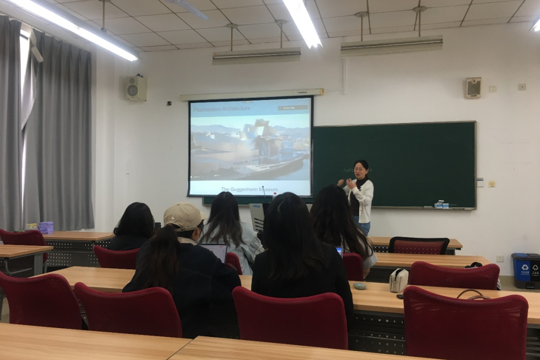 在课堂上,迟老师运用多种材料丰富课堂教学内容,她融合了文学、影视、建筑、美术等各方面的知识来解读后现代主义。信息量巨大,也很有趣味性,充分体现了加德纳的多元智能理论,使用各种媒介来开展教学,满足不同学习风格学生的需求。比如,她展示了现代主义和后现代主义建筑图片,让同学们自行总结出它们的不同特点,以及这种理念对于课程开发及设计有何启示。