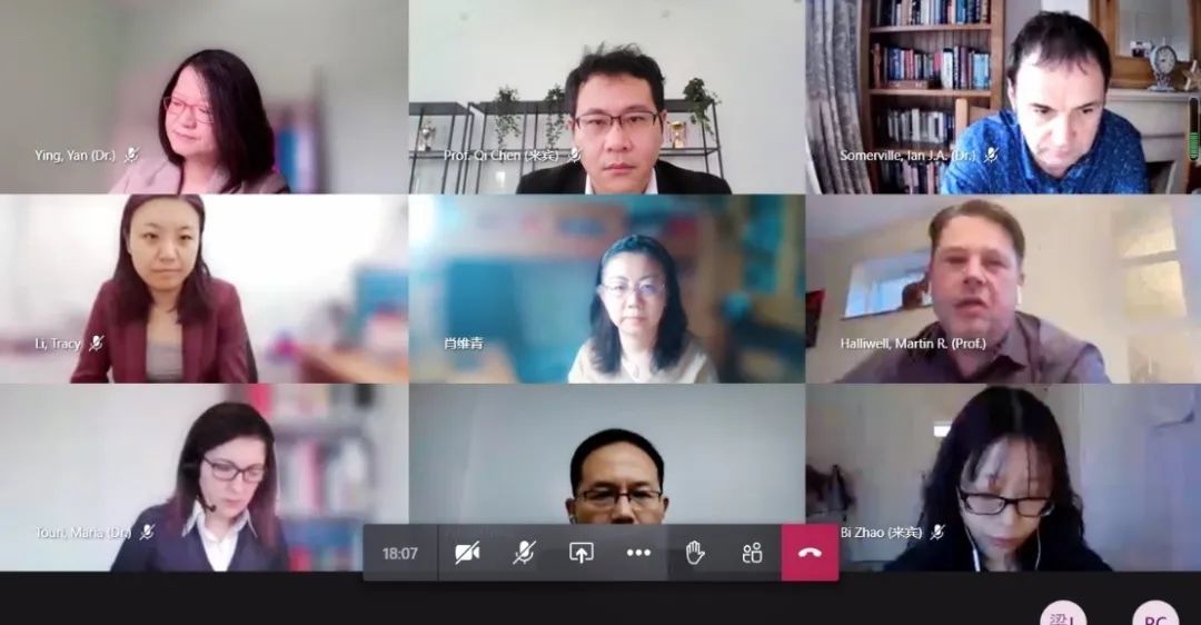 2020年10月22日下午,我校对外合作交流处、英语学院、新闻传播学院与英国莱斯特大学相关学者和教师,就有关进一步推进双边交流、丰富合作内容和形式等议题,成功进行了深入而有成效的“云交流”。英语学院国际化工作副院长陈琦老师、翻译系主任肖维青老师、外事秘书魏雨萌老师,以及正在英国曼彻斯特大学访学的赵璧老师参与了此次线上讨论。