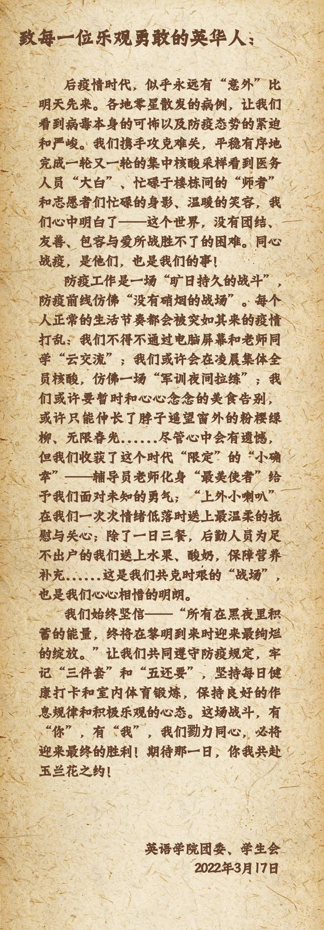 Don’t forget, we are a team!【室友午间、晚间休息时,记得降低音量;互相鼓励、谈心,在寝室中营造积极阳光的良好氛围,保持健康的心态,才能够发挥出每一个人的战斗力】