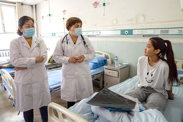 在第三师五十一团医院的病房里,石河子大学医学院第一附属医院感染科副主任医师买力坎木在查房时仔细地询问着16岁的姑娘古海尔•奴拉洪的病情。