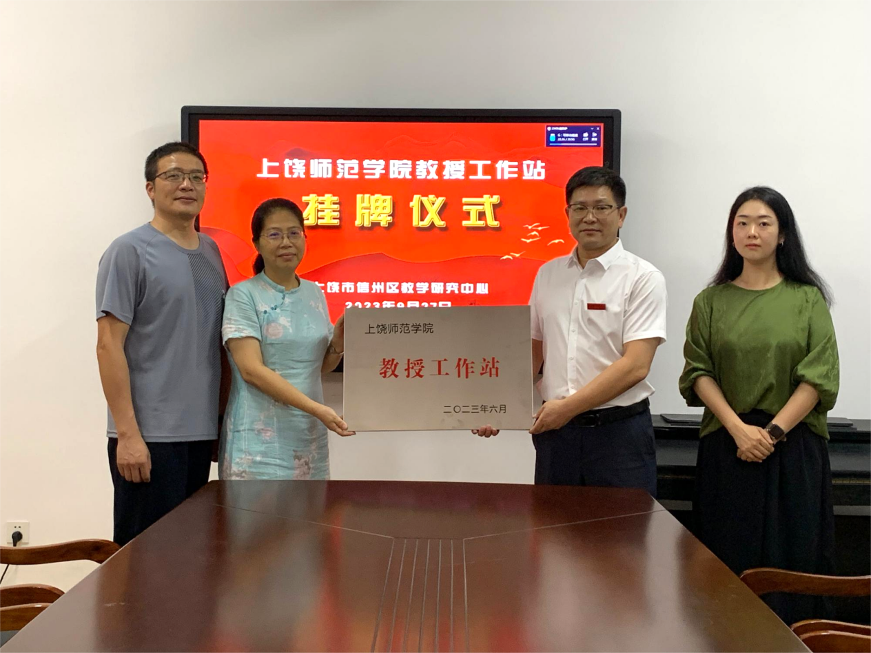 9月27日下午美术与设计学院党总支书记洪广明(教授)赴上饶市信州区教学研究中心举行教授工作站挂牌仪式,随行老师有彭雪健、纪默。
