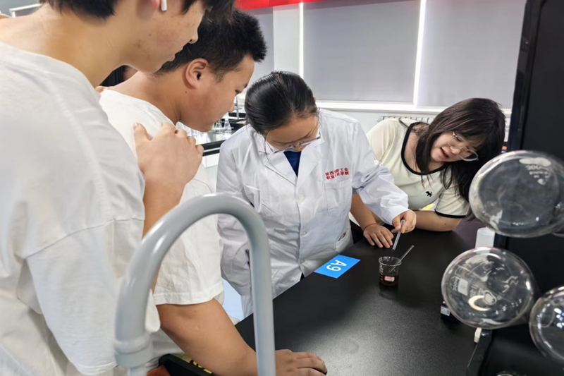 在科普实验模块,科普老师在分析室为同学们表演了“魔壶”“变色的碘伏”等有趣的科普实验,并讲解了其中的化学原理。大小朋友们对神奇的化学现象惊叹不已,并亲手实践。