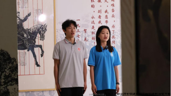 随后,实践团成员王心怡和张鑫阳站到众人面前,重温誓词:“今天国难当头,为了共同对付日本帝国主义,我愿带头穿上灰衣服,戴上白帽徽。别看我们外表是白的,可心里是红的,永远是红的!” 这掷地有声的誓言,穿越时空,仿佛将大家带回了那个热血沸腾的年代,让每一位成员都感受到了先辈们坚定的信念与无畏的勇气。紧接着,实践团成员诵读了《论持久战》的节选。字里行间,蕴含着深刻的战略智慧与必胜信念,大家沉浸其中,对那段历史有了更深刻的理解,也更真切地体会到抗战精神的丰富内涵,它不仅仅是一种抗争,更是一种坚韧不拔、百折不挠的民族精神。