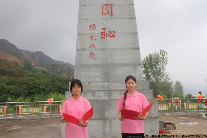 在纪念碑前,实践团成员赵怡轩、石亚彤同学深情朗诵了《中条山 不朽的丰碑》。朗诵声传递着对以唐淮源、寸性奇将军为代表的殉国英烈以及全体抗战军民的无限追思与敬仰,彰显了新时代青年传承红色基因、担当时代使命的坚定决心。