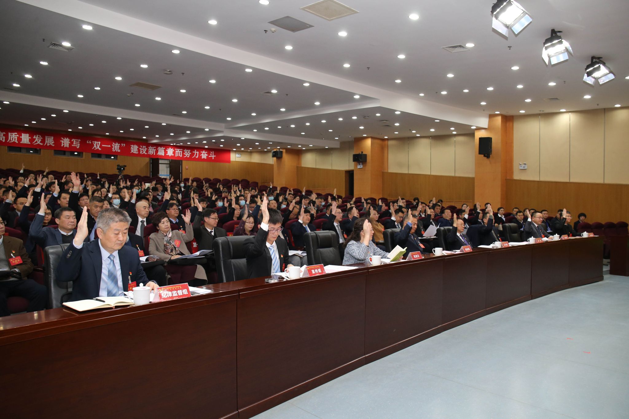 王道安宣读了省委教育工委同意我校召开第三次党代会的批复文件。大会筹备工作领导小组组长、校长李志健作党代会筹备工作报告。会议以举手表决的方式审议通过了代表资格审查报告(书面),大会主席团成员和秘书长名单,大会议程。